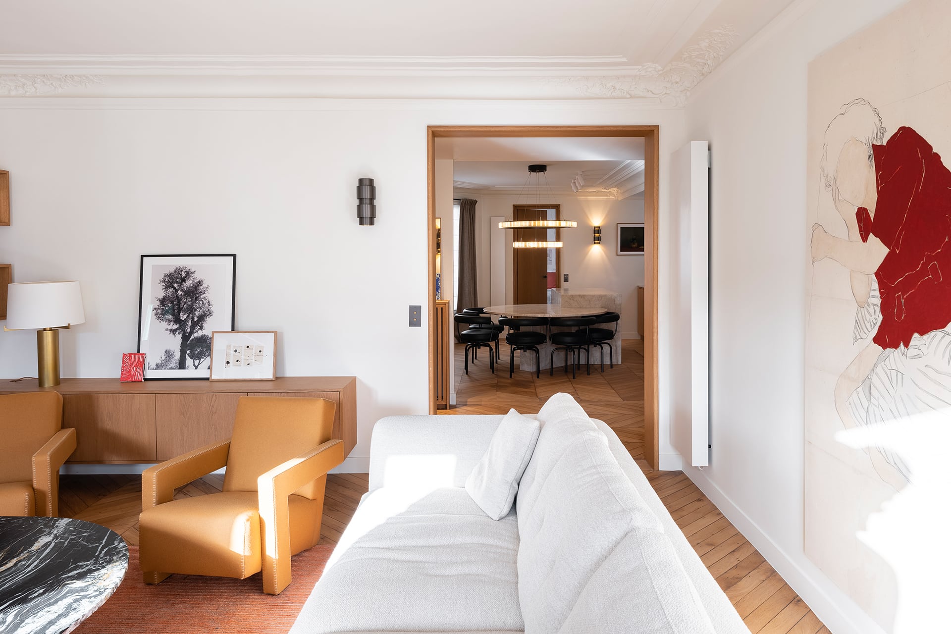Conception de l’aménagement, dessin de pièces de mobilier, curation d’œuvres d’art & maitrise d’ouvrage